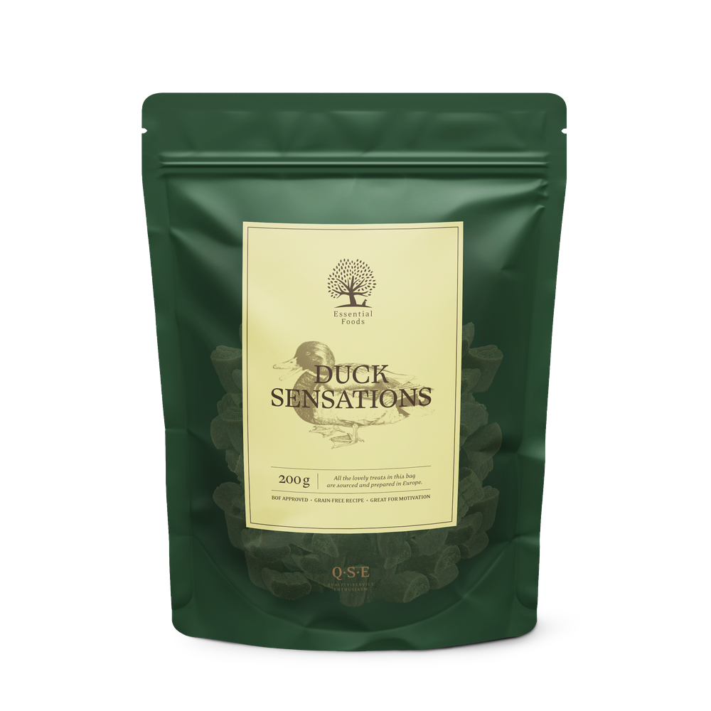 Bragðgott þjálfunarnammi með andarkjöti. Inniheldur ríkulegt magn af önd sem gefur framúrskarandi bragð. Endurlokanlegar umbúðir sem auka geymsluþolið og heldur bragðinu sem allra ferskustu. Stærð ca 2-3cm.